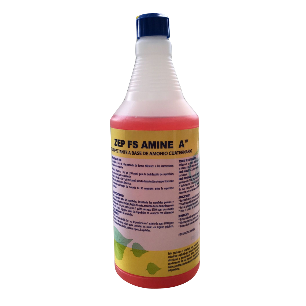DESINFECTANTE Y SANITIZANTE DE GRADO ALIMENTICIO SIN OLOR, CON AMONIO CUATERNARIO, COMBATE EL VIRUS DE LA SALMONELLA FUNCIONA BIEN EN ALTAS Y A BAJAS TEMPERATURAS. NO REQUIERE ENJUAGUE A LA DILUCIÓN ADECUADA