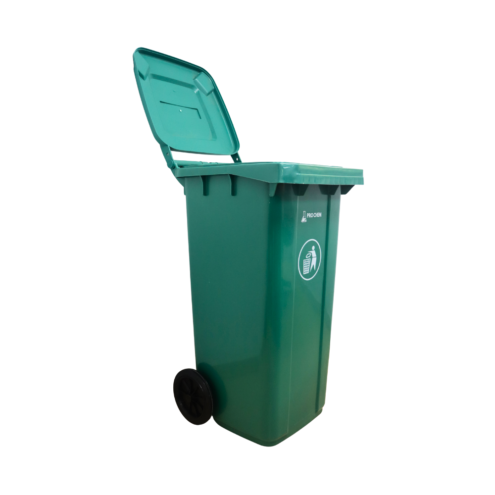 CONTENEDOR DE RESIDUOS DE 120 LITROS, FABRICADO EN PLÁSTICO RESISTENTE CON RUEDAS. IDEAL PARA USO INSTITUCIONAL, INDUSTRIAL O DOMÉSTICO PARA MOVILIZAR GRAN CANTIDAD DE DESECHOS.