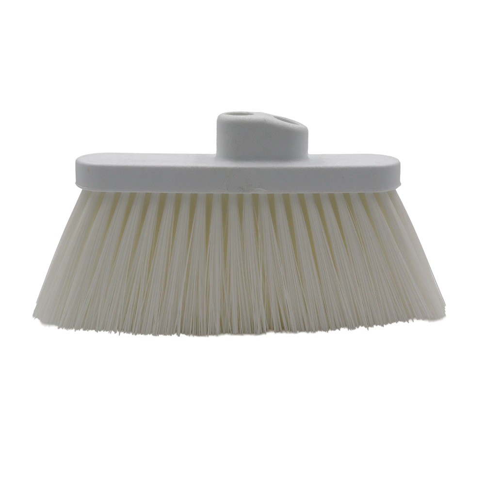 CABEZA DE ESCOBA INDUSTRIAL COLOR BLANCO, DISEÑADA CON CERDAS FIRMES Y RESISTENTES PARA UN BARRIDO EFICIENTE EN ÁREAS AMPLIAS. COMPATIBLE CON MANGOS INTERCAMBIABLES, OFRECE VERSATILIDAD EN ENTORNOS DONDE SE REQUIERE MÁXIMA HIGIENE. EL COLOR BLANCO FACILITA LA DETECCIÓN DE SUCIEDAD Y FORMA PARTE DE UN SISTEMA DE CODIFICACIÓN POR COLORES QUE PREVIENE LA CONTAMINACIÓN CRUZADA. IDEAL PARA USO EN INDUSTRIAS ALIMENTARIAS, FARMACÉUTICAS O INSTITUCIONALES.
