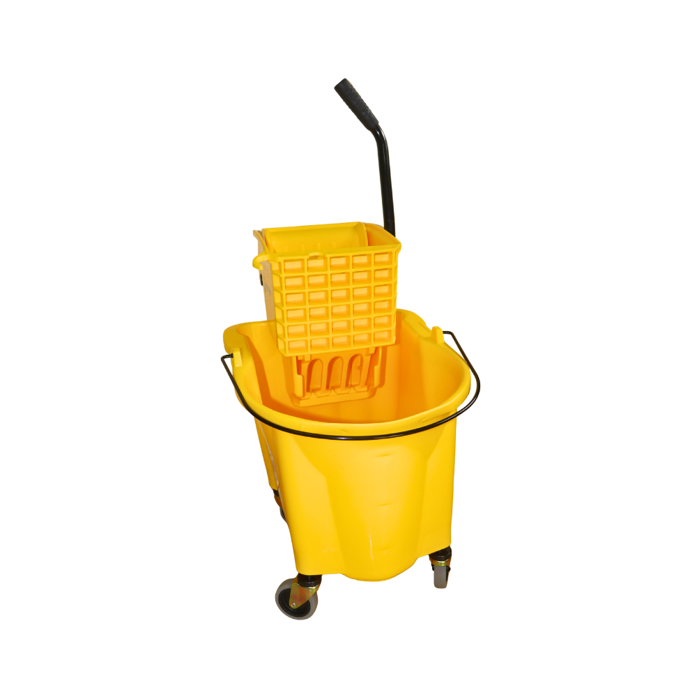 CUBO EXPRIMIDOR DE 36 LITROS, DISEÑADO ESPECIALMENTE PARA ENTORNOS COMERCIALES E INDUSTRIALES.SU DISEÑO INTELIGENTE CON EXPRIMIDOR INCORPORADO PERMITE ESCURRIR MOPAS DE MANERA RÁPIDA Y EFICIENTE, ELIMINANDO LA NECESIDAD DE CONTACTO DIRECTO CON EL AGUA SUCIA, LO QUE GARANTIZA HIGIENE Y SEGURIDAD EN CADA TAREA DE LIMPIEZA.
