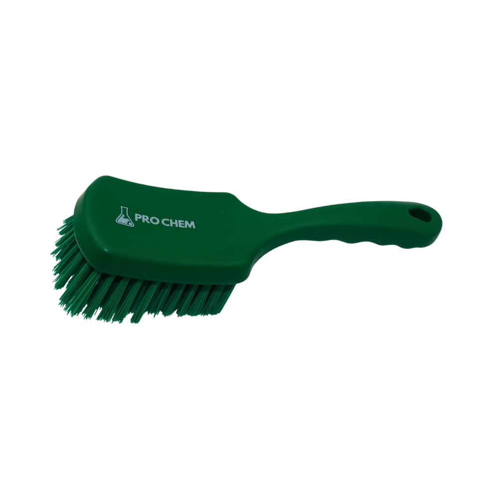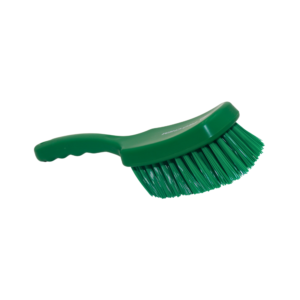 CEPILLO ERGONÓMICO DE MANGO CORTO CON CERDAS FIRMES DE ALTA CALIDAD, DISEÑADO PARA LIMPIEZA EFICIENTE EN ESPACIOS REDUCIDOS O DE DIFÍCIL ACCESO. SU DISEÑO COMPACTO PERMITE MAYOR CONTROL DURANTE EL USO. FABRICADO EN COLOR VERDE PARA SISTEMAS DE CODIFICACIÓN POR ZONAS, IDEAL PARA PROTOCOLOS DE HIGIENE EN AMBIENTES INDUSTRIALES, INSTITUCIONALES Y ALIMENTARIOS. RESISTENTE, DURADERO Y FÁCIL DE ALMACENAR.
