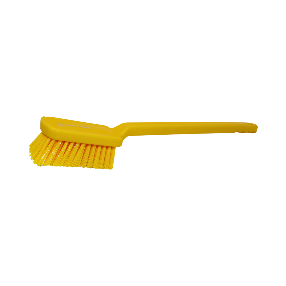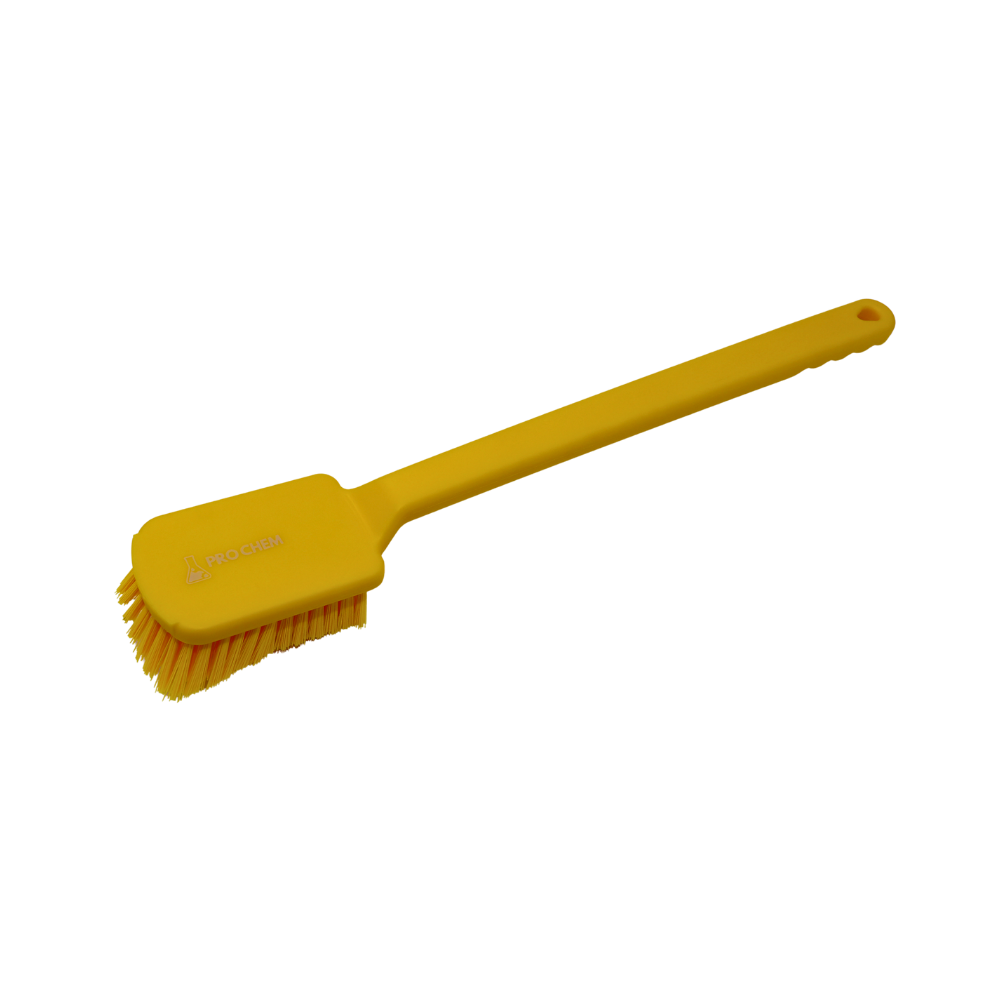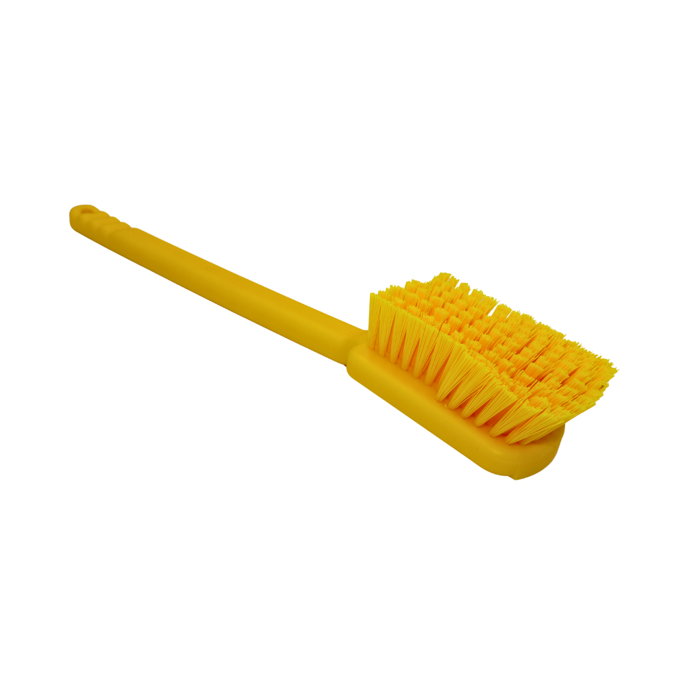 CEPILLO DE MANGO LARGO EN COLOR AMARILLO, DISEÑADO PARA FACILITAR LA LIMPIEZA EN ÁREAS DE DIFÍCIL ACCESO. SUS CERDAS RESISTENTES PERMITEN REMOVER SUCIEDAD CON EFICACIA, MIENTRAS QUE EL MANGO ERGONÓMICO BRINDA COMODIDAD DURANTE SU USO. EL COLOR AMARILLO FUNCIONA COMO CÓDIGO DE COLOR PARA DIFERENCIAR ZONAS DE TRABAJO Y GARANTIZAR UN MEJOR CONTROL HIGIÉNICO.
