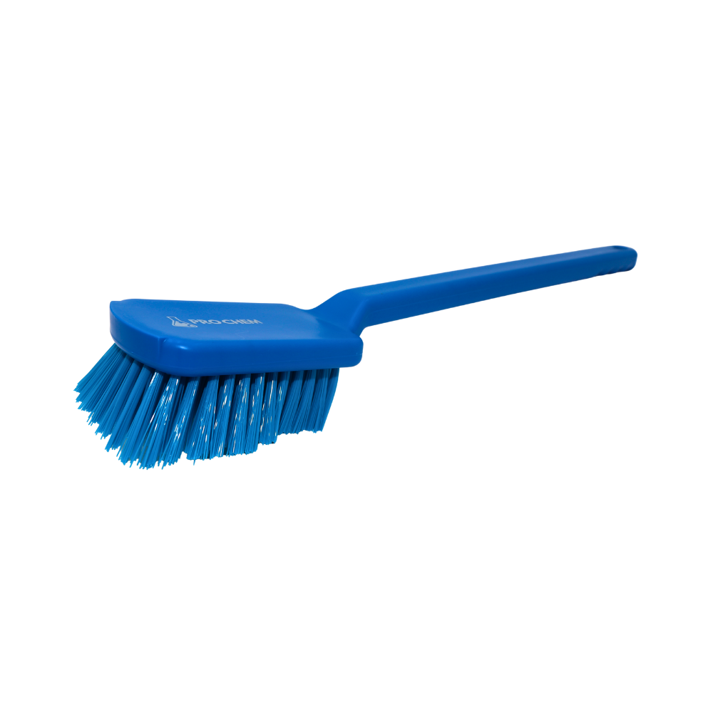 LAS CERDAS DE PBT (TEREFTALATO DE POLIBUTILENO) DE RIGIDEZ INTERMEDIA SON LO SUFICIENTEMENTE FUERTES PARA FREGAR Y REMOVER RESIDUOS PERSISTENTES, EL MANGO DE MAYOR LONGITUD, FABRICADO EN PLÁSTICO ESTRUCTURAL, PERMITE ALCANZAR ÁREAS DE DIFÍCIL ACCESO CON FACILIDAD Y SEGURIDAD.