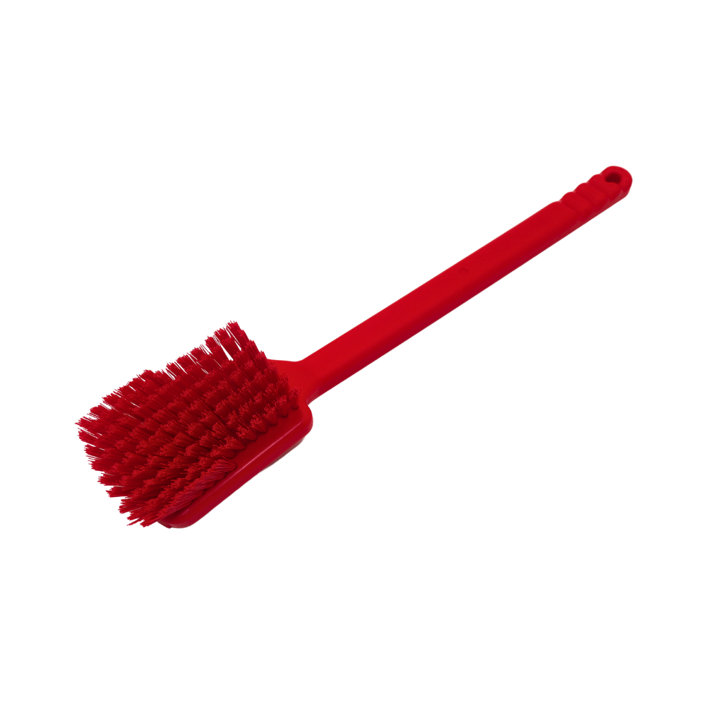 LAS CERDAS DE PBT (TEREFTALATO DE POLIBUTILENO) DE RIGIDEZ INTERMEDIA SON LO SUFICIENTEMENTE FUERTES PARA FREGAR Y REMOVER RESIDUOS PERSISTENTES, EL MANGO DE MAYOR LONGITUD, FABRICADO EN PLÁSTICO ESTRUCTURAL, PERMITE ALCANZAR ÁREAS DE DIFÍCIL ACCESO CON FACILIDAD Y SEGURIDAD.