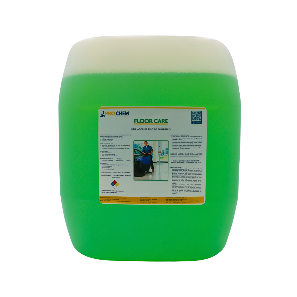 FLOOR CARE ES UN LIMPIADOR PROFESIONAL CON PH EQUILIBRADO, DISEÑADO PARA PROTEGER Y MANTENER UNA AMPLIA VARIEDAD DE SUPERFICIES COMO MÁRMOL, MADERA SELLADA, CERÁMICA, VINILO Y PORCELANATO. SU FÓRMULA PRESERVA EL ACABADO ORIGINAL DEL PISO SIN CAUSAR DAÑO NI DETERIORO. CUENTA CON BAJA PRODUCCIÓN DE ESPUMA, LO QUE LO HACE IDEAL PARA EL USO CON MÁQUINAS FREGADORAS AUTOMÁTICAS, FACILITANDO EL ENJUAGUE Y OPTIMIZANDO LA EFICIENCIA DEL PROCESO DE LIMPIEZA