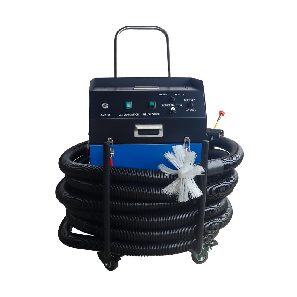 EQUIPO PROFESIONAL PARA LIMPIEZA INTERNA DE DUCTOS DE AIRE ACONDICIONADO (HVAC). INCORPORA CEPILLOS ROTATIVOS, POTENTE SUCCIÓN Y CÁMARA INTEGRADA QUE PERMITE INSPECCIONAR Y MONITOREAR EL PROCESO EN TIEMPO REAL. SU DISEÑO COMPACTO CON MANGUERA ENROLLABLE Y CONTROL MANUAL O REMOTO FACILITA LA OPERACIÓN EN ESPACIOS REDUCIDOS. IDEAL PARA MEJORAR LA CALIDAD DEL AIRE Y GARANTIZAR SISTEMAS MÁS LIMPIOS Y EFICIENTES.