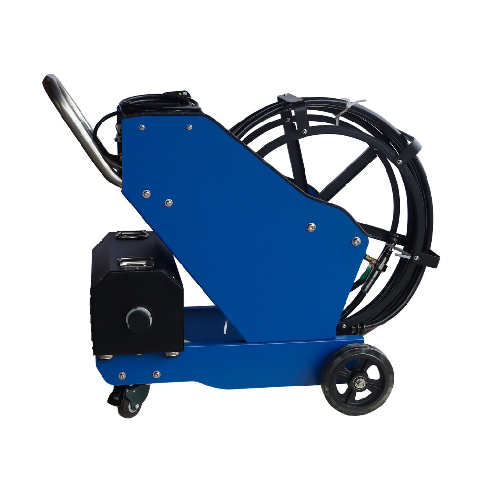 EQUIPO PROFESIONAL PARA LIMPIEZA PROFUNDA DE CAMPANAS, DUCTOS Y EXTRACTORES EN COCINAS COMERCIALES. COMBINA CEPILLOS ROTATIVOS, GENERADOR DE ESPUMA ACTIVA Y SISTEMA DE ALTA PRESIÓN PARA ELIMINAR GRASA, HOLLÍN Y RESIDUOS DIFÍCILES. DISEÑO MÓVIL CON MANGUERA ENROLLABLE Y COMPONENTES ROBUSTOS, FACILITA ACCESO Y OPERACIÓN EN ESPACIOS EXIGENTES. IDEAL PARA MANTENER ENTORNOS SEGUROS, HIGIÉNICOS Y CONFORMES A REGULACIONES.