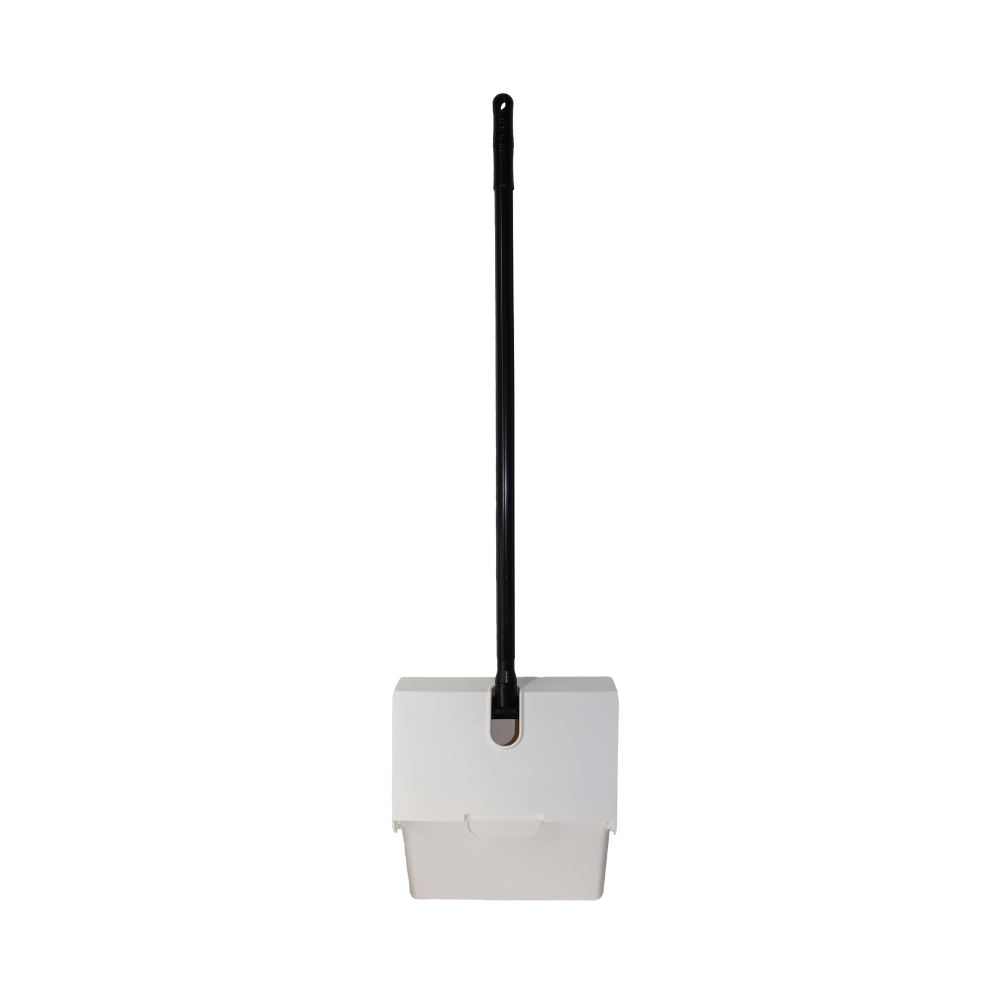 RECOGEDOR PALA LOBBY BLANCO CON TAPA ABATIBLE Y MANGO LARGO QUE EVITA AGACHARSE AL RECOGER RESIDUOS. FABRICADO EN MATERIAL PLÁSTICO RESISTENTE, IDEAL PARA LIMPIEZA EN INTERIORES Y EXTERIORES. EL COLOR BLANCO SE UTILIZA COMO CÓDIGO DE COLOR PARA DIFERENCIAR ÁREAS DE TRABAJO EN PROGRAMAS DE LIMPIEZA PROFESIONAL.