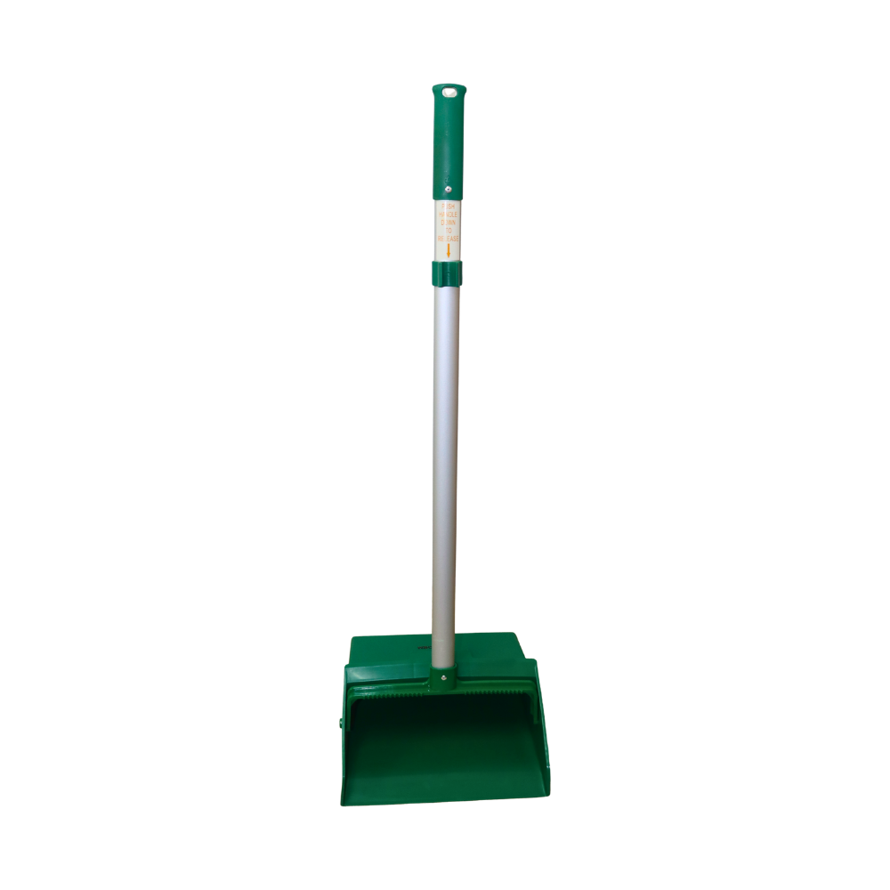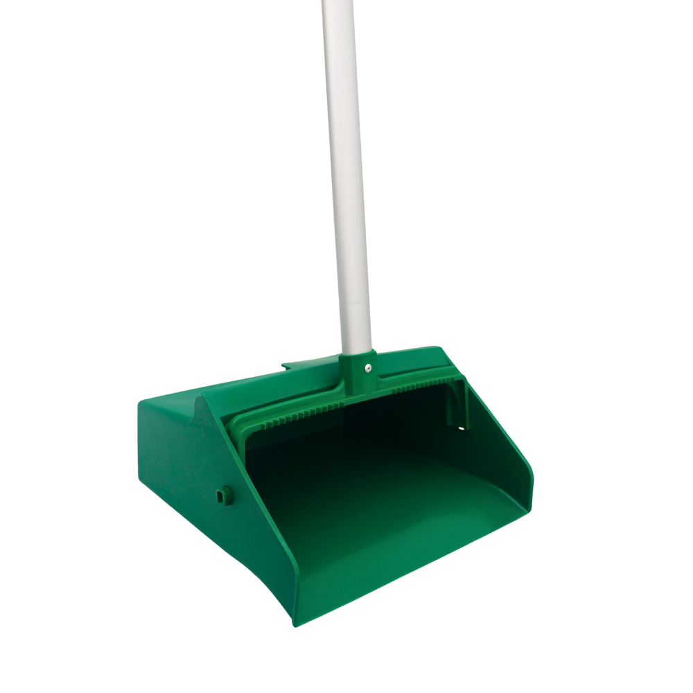 RECOGEDOR PLÁSTICO TIPO LOBBY EN COLOR VERDE, DISEÑADO CON PALO LARGO PARA MAYOR COMODIDAD Y POSTURA ERGONÓMICA. SU DISEÑO ABATIBLE PERMITE UN USO PRÁCTICO EN LA RECOLECCIÓN DE RESIDUOS SIN NECESIDAD DE AGACHARSE. FABRICADO EN MATERIAL RESISTENTE Y LIGERO, IDEAL PARA ÁREAS COMERCIALES, INDUSTRIALES O DOMÉSTICAS. EL COLOR VERDE FUNCIONA COMO CÓDIGO PARA DIFERENCIAR ZONAS DE LIMPIEZA.