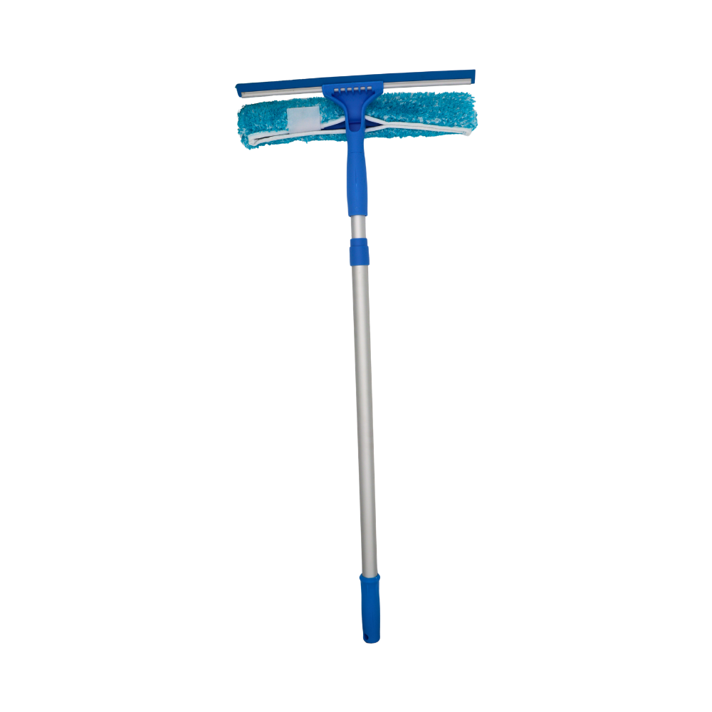 HERRAMIENTA DE LIMPIEZA 2 EN 1 IDEAL PARA VIDRIOS, VENTANALES Y SUPERFICIES LISAS. CUENTA CON UNA ESPONJA SUAVE PARA REMOVER SUCIEDAD Y UNA HOJA DE GOMA TIPO ESCURRIDOR PARA UN ACABADO SIN MARCAS. RECOMENDADO PARA USO DOMÉSTICO O PROFESIONAL. MEDIDA DEL CABEZAL: 14 PULGADAS. FÁCIL DE ARMAR, USAR Y ALMACENAR.